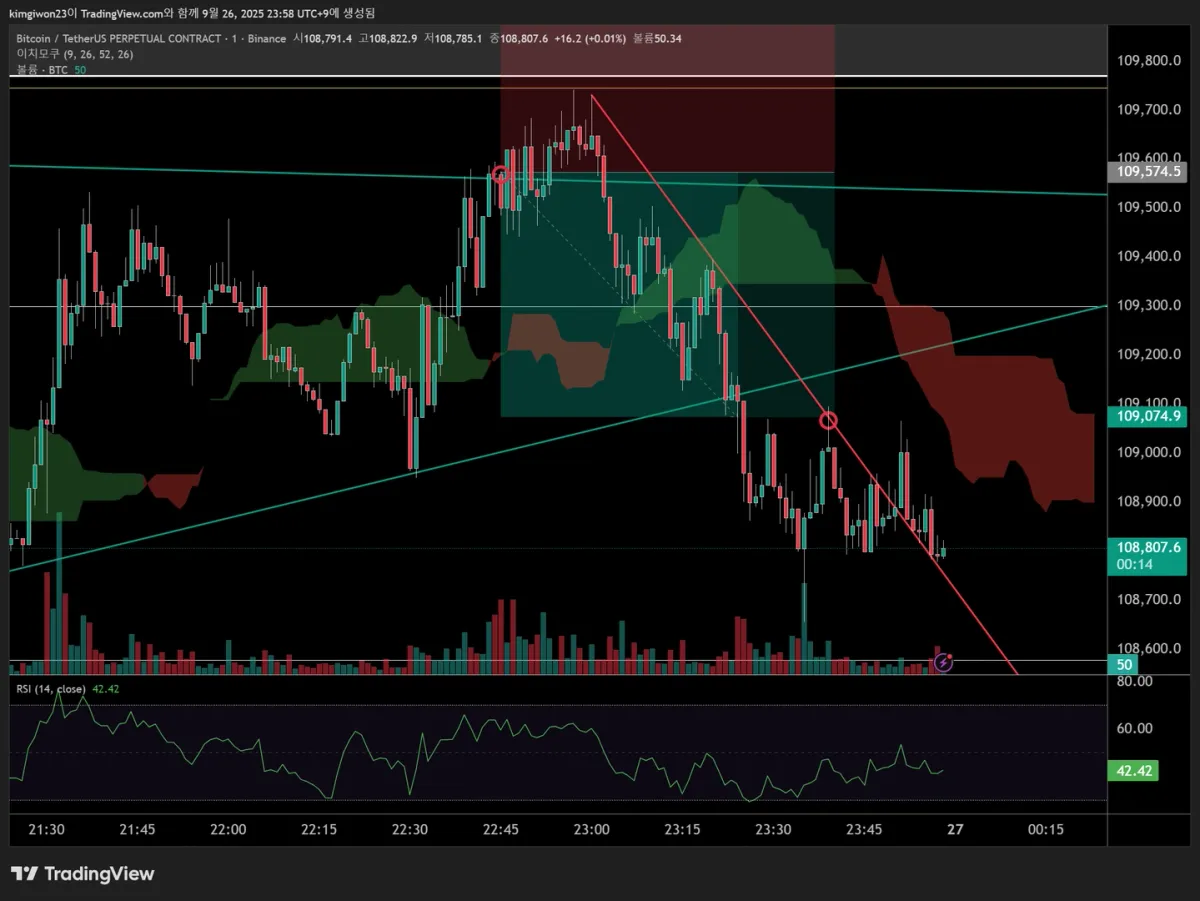 박스권에서 횡보를 하고있어 짧게 가져가 보자 하고 박스 상단 터치 가능성을 보고 미리 진입을 했습니다.