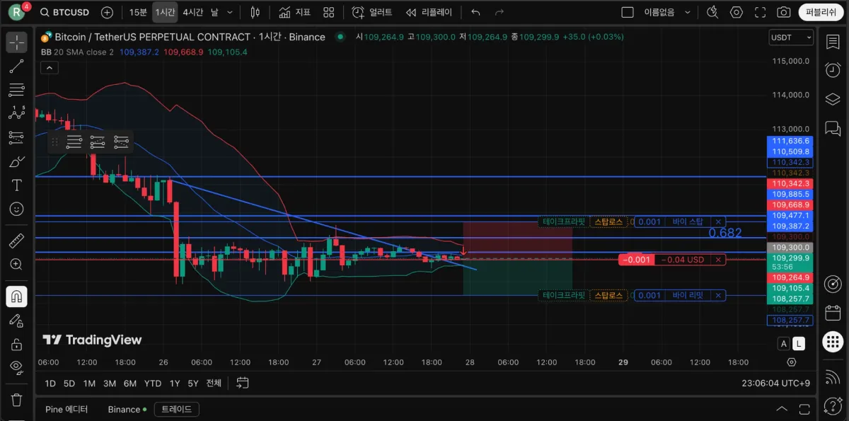 처음 거래는 10만원으로 거래해서 바이낸스/트레이딩 뷰의 조작법에 익숙해지는 지는 기간(30일), 이후에는 100만원으로 진행 예정