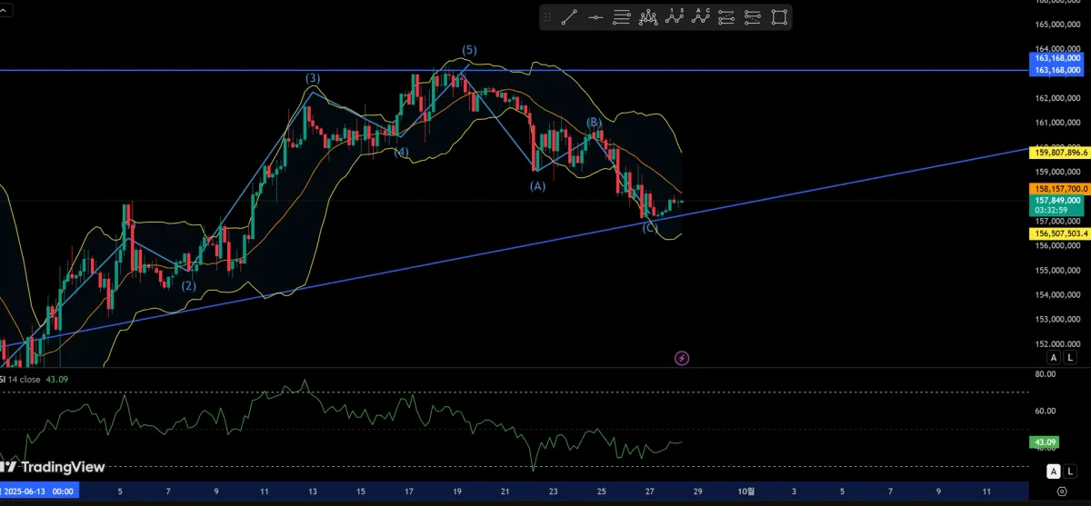 4시간봉 기준으로 엘리엇 ABC 하락 파동이 끝나고, 방향을 돌리는 것으로 판단하여 B 지점인 105722를 1차 익절 목표로 보고 진입했습니다.