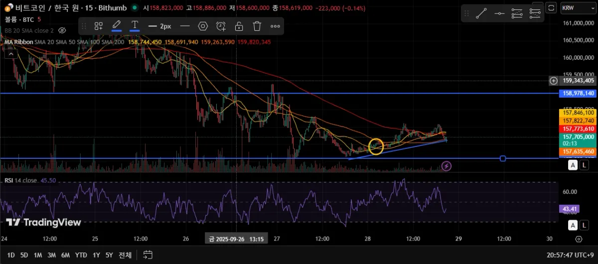 지지선을 한번 건드린 뒤 상승 추세확인.