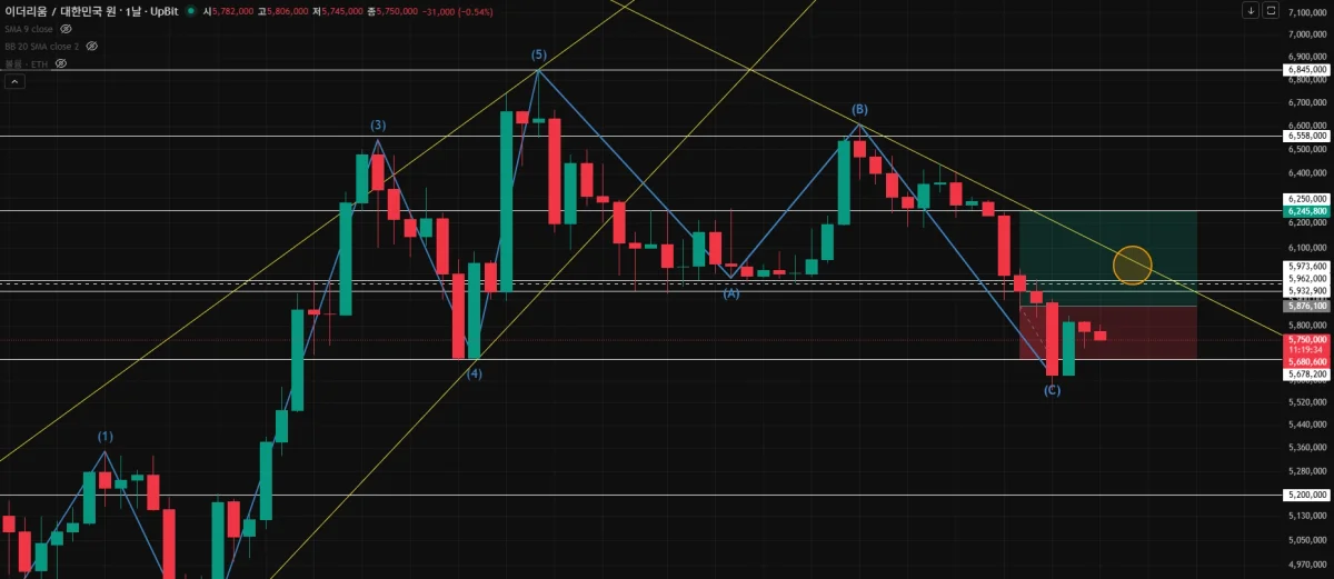 해당 상황에서 반등에 서공한다면 예상으론 주황 원으로 체크해둔곳, 하락추세선에 걸치는 순간 익절을 해야할 것으로 판단되어져