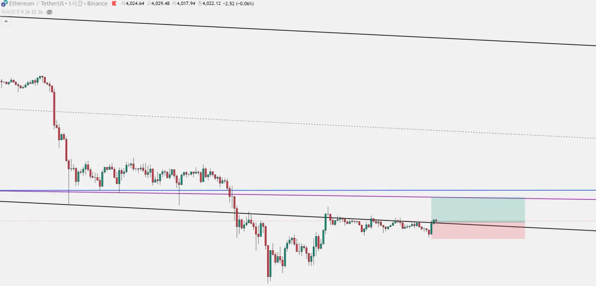 단기 하방추세선 하단에서 매수 진입하였습니다