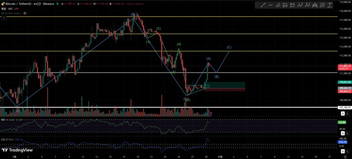 진입근거 : 어센딩 트라이앵글패턴 / 조정 A파동중에 있다고 판단.