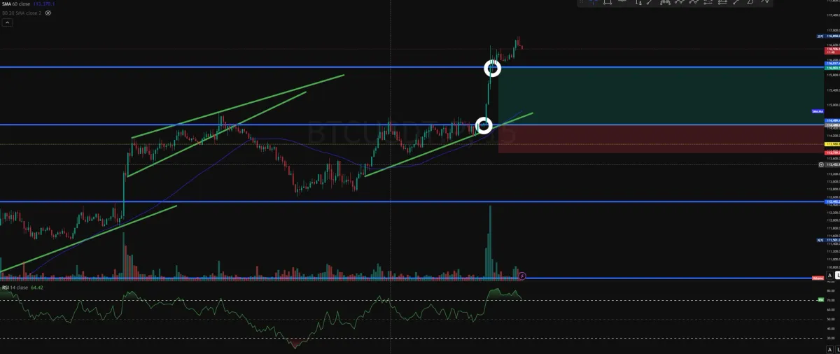 운이 좋게 예측한 포지션 결과가 잘 나와서 115,967 목표가로 익절을 성공적으로 했습니다.