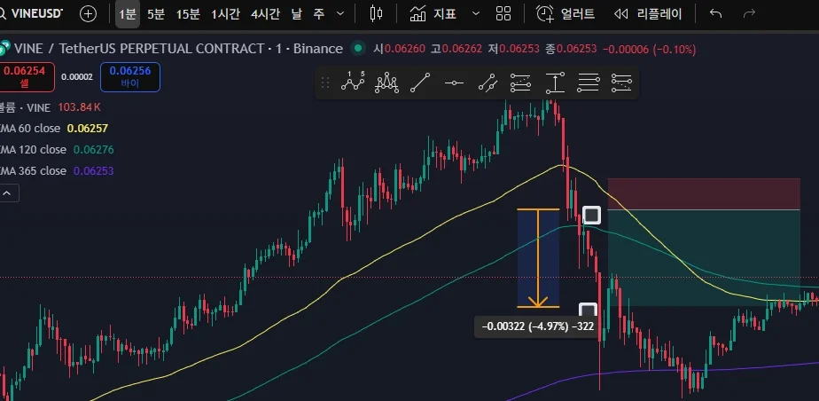 진입근거: 거래량 딱 하나 보고 들어갔는데 복기 해보면 매우 위험한 행동이였고 반복 하고 싶지 않다