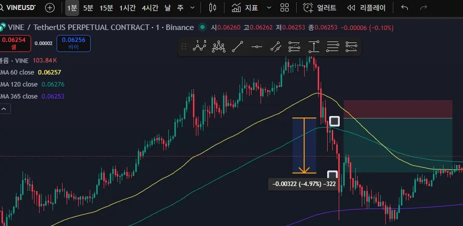 진입근거: 거래량 딱 하나 보고 들어갔는데 복기 해보면 매우 위험한 행동이였고 반복 하고 싶지 않다