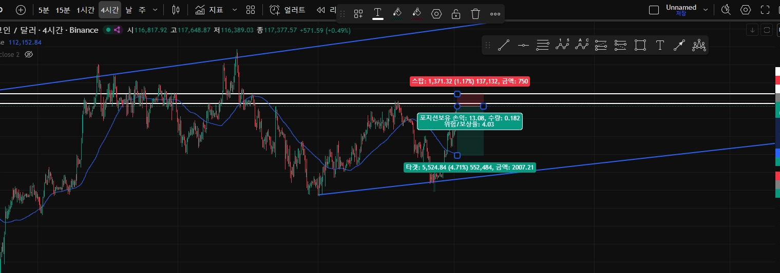 전고점 저항 근거로 삼고 숏포지션 진입했습니다