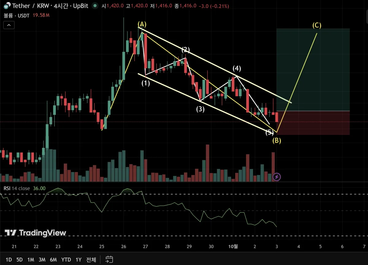 그래서 다른 코인들 둘러보다가 테더(USDT)의 현재 추세가