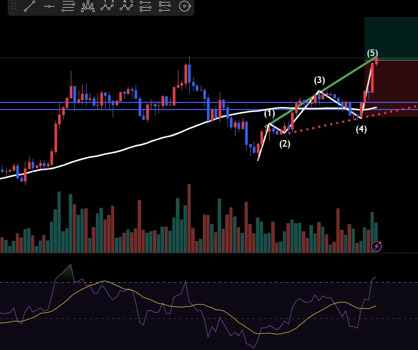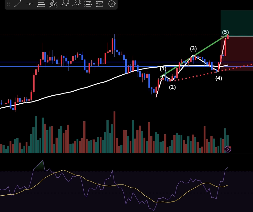 엘리엇 (4)파동 조정 후 (5)파동 상승 구간으로 수평 저항선을 돌파