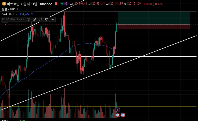 하단 지지선 힘 받고, 상단 저항선까지 오를꺼라 추측하여