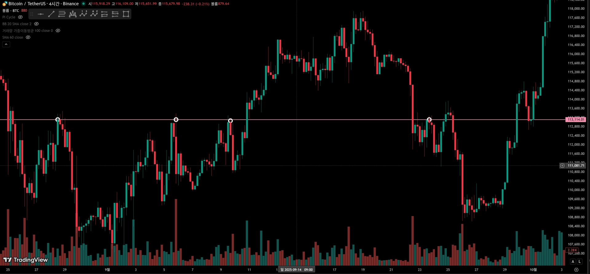 오전에 자다가 깨서 제대로 차트분석하지 않고 더블탑만 보자마자 거래를 했는데, 113114 구간에 저항선이 있다는 걸 뒤늦게 깨달았습니다.