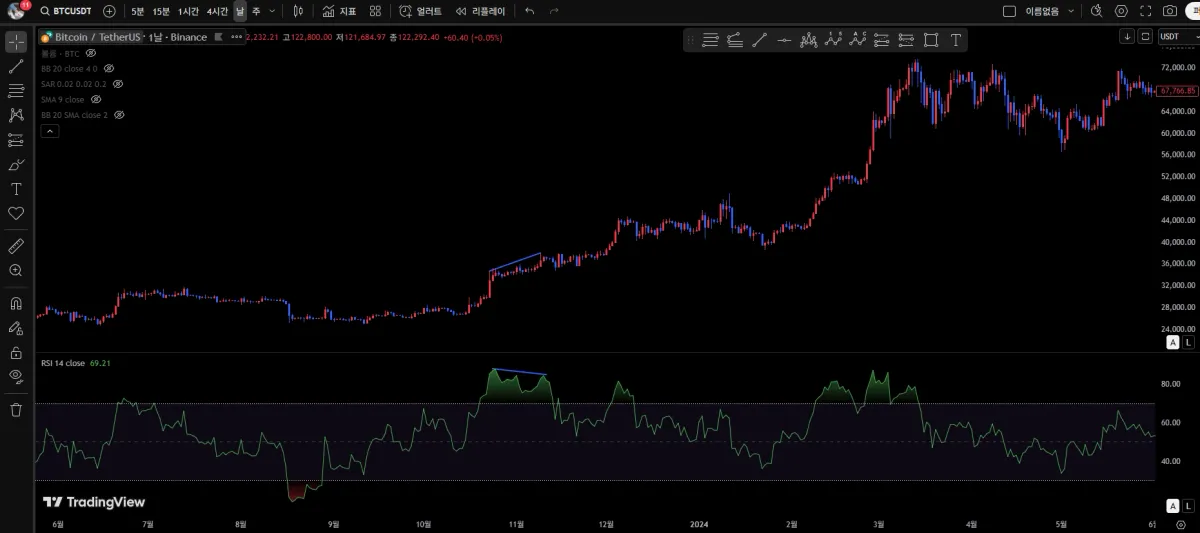 7일 챌린지19기 2주차 <📆11일차 MISSION> RSI 다이버전스, 볼린저밴드 이해하기
