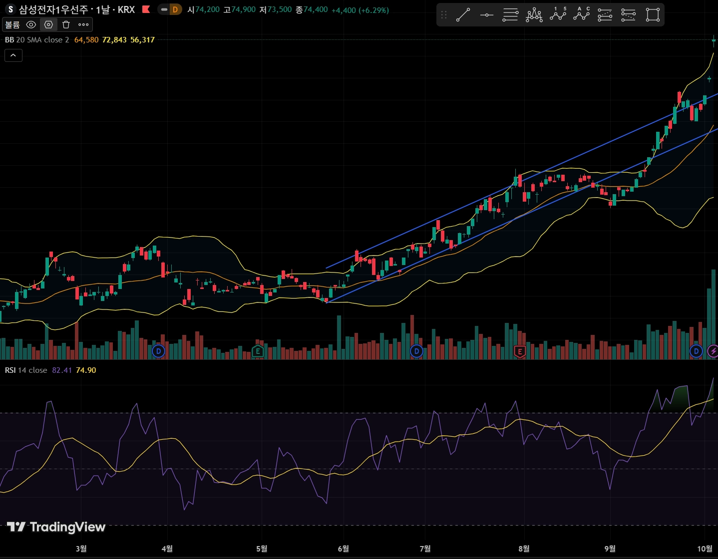 가격이 오르고 있는 것 같아서 구매하고 RSI가 정점을 찍고 내려올 때 조금 더 오르면 익절하려고 계획했으나 실행에 옮기지 못 함.