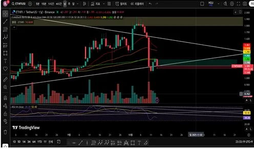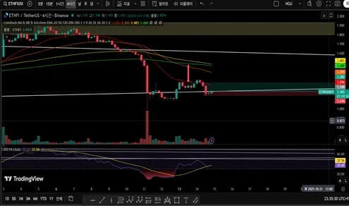 4시간봉 : 상승전환하며 삼각수렴 지지선 돌파시도중