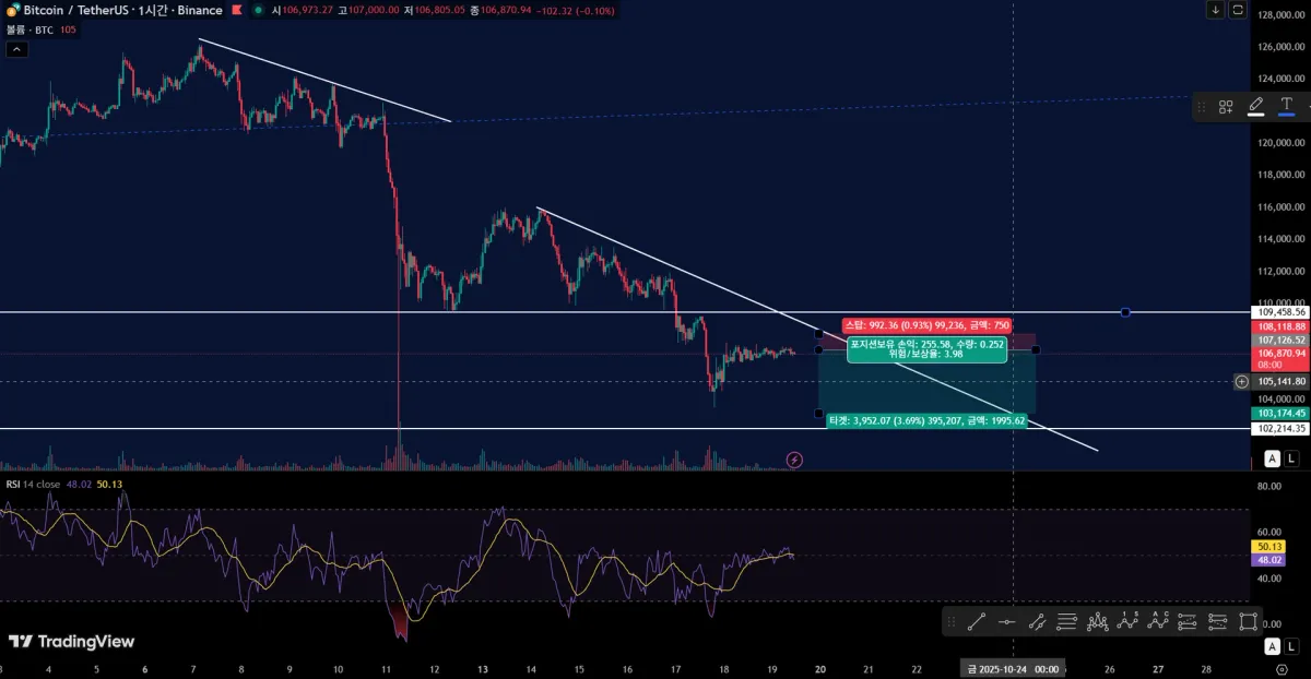 하락추세선 에 따라 전 저점에 가까이 갈것같다고 예상하는게 손익비가 좋은 자리 같아서