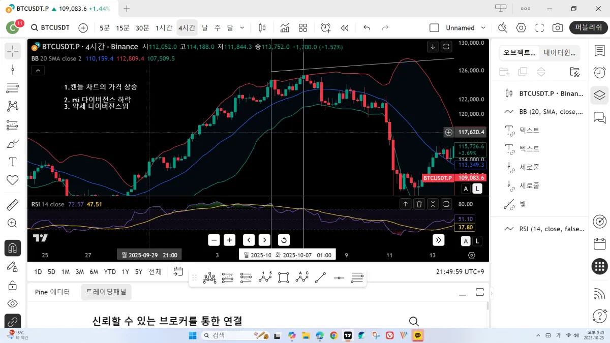 21기, 11일차 mission>rsi 다이버전스, 볼린저 밴드 이해.