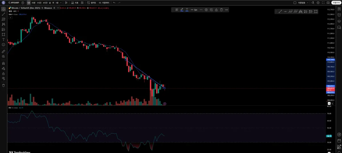 가격은 떨어지고 있지만 RSI 지표는 미미하게 올라가고있습니다.
