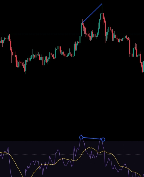 가격은 올라가지만, rsi는 하락하는 하락 다이버전스를 찾을수있었습니다