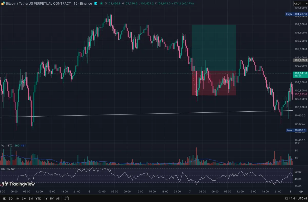 더블바텀 넥라인에서 생성된 매물대에서 지지받고 올라가는 시나리오를 생각했으나 매물대를 하방으로 이탈하며 손절되었습니다.