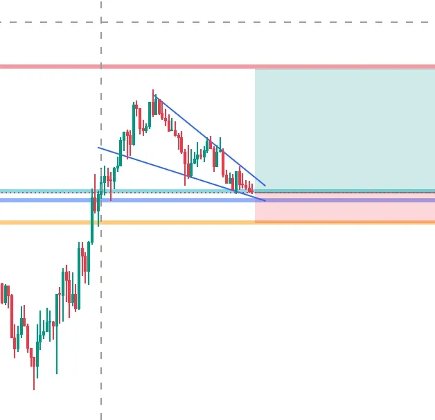 쐐기형 패턴이라 생각하여 돌파하면 롱 타점이 맞는것 같아 매매 진행하였고 결과적으로 0.5구간 터치하여 손절 진행하였습니다.