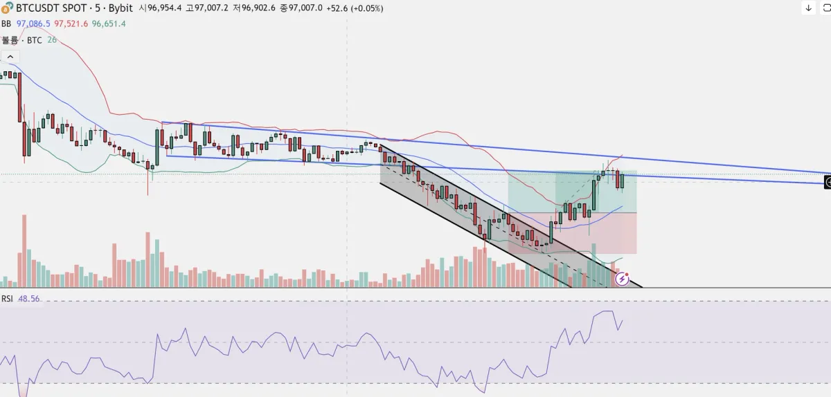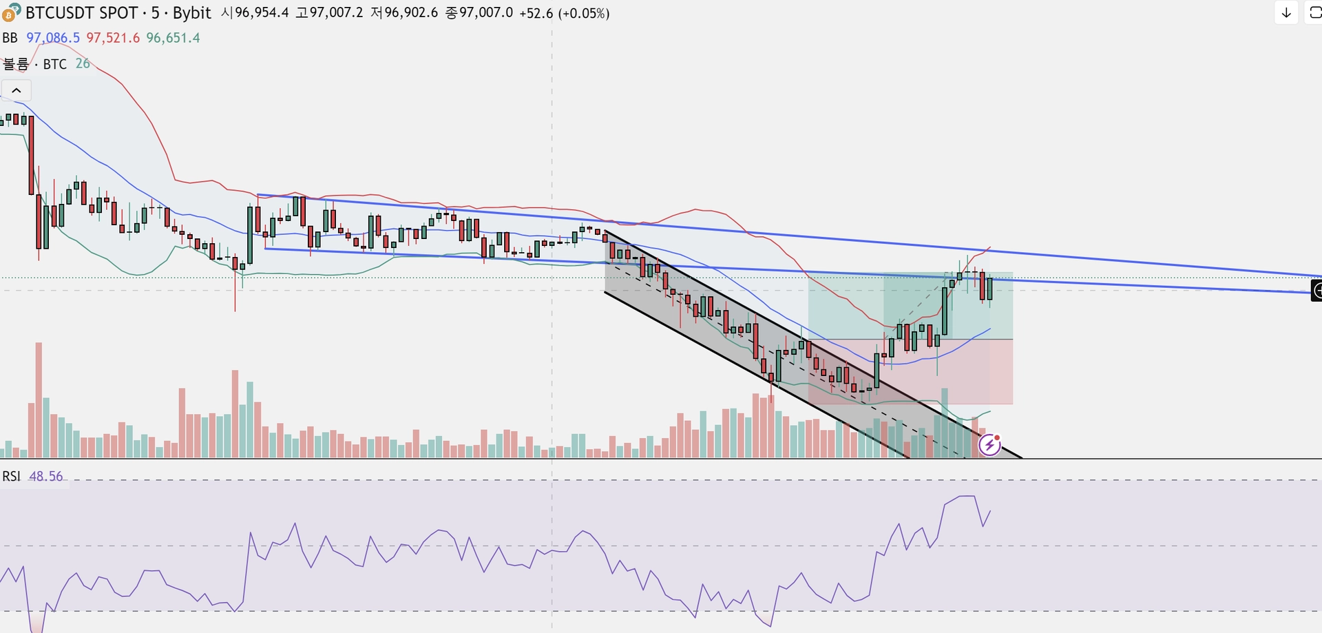 채널 매매법과 rsi 볼린저밴드를 사용해서 상승 할 때 안전하게 진입하여 익절하였습니다.