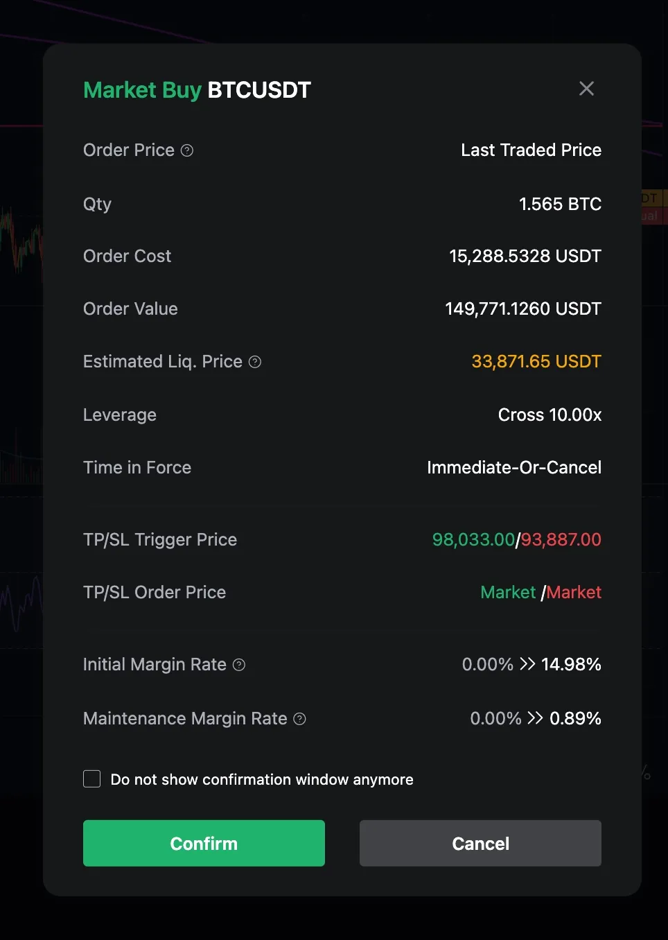 ③ 익절 목표 설정: 목표가(98,033)를 과거의 주요 저항선이라고 판단함. 따라서 저항가에 닿을 것이라 기대