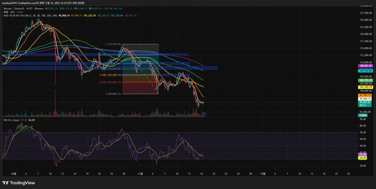 바이낸스 거래소를 이용하려고 하다보니 모의투자는 해보지 못했지만 현재 피보나치비율 0.362에 저항을 맞고 하락후 매도세가 강하며