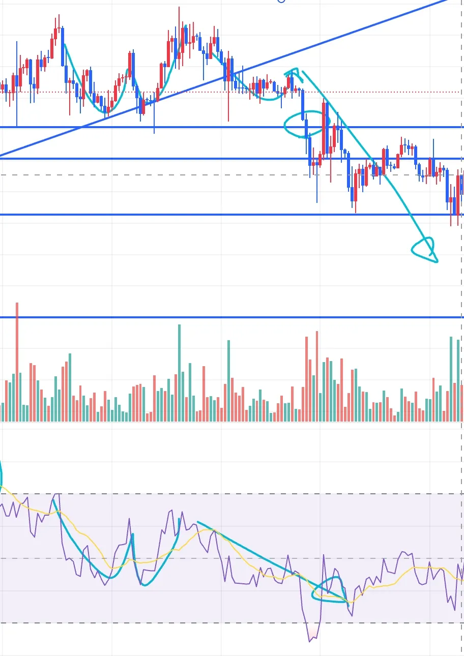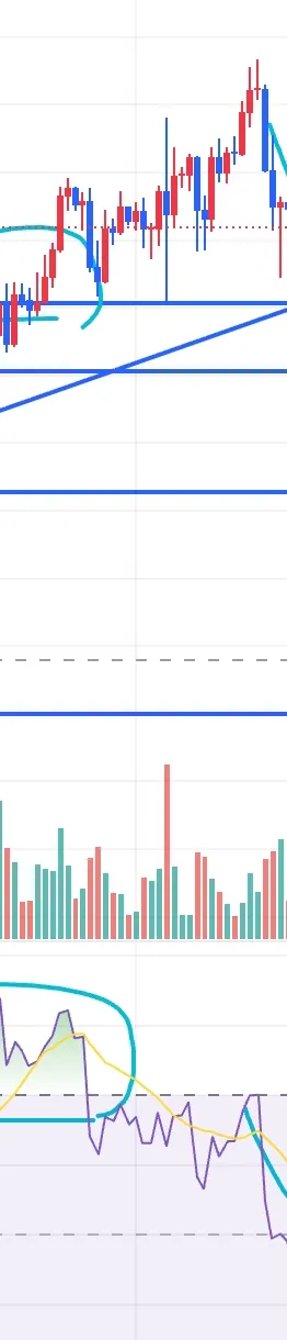 이와 같이 상승하고있는데 RSI가 하락하고나서