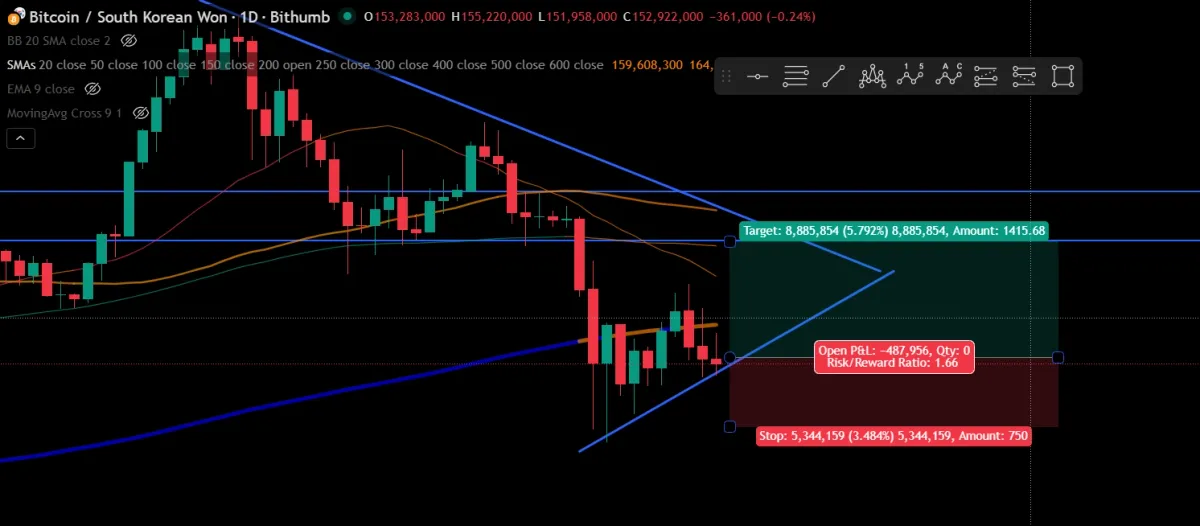 수렴한다고 생각해서 수렴구간의 파동을 예상했는데 다음날 아침 하락장이 심하게 왔었죠? ^^