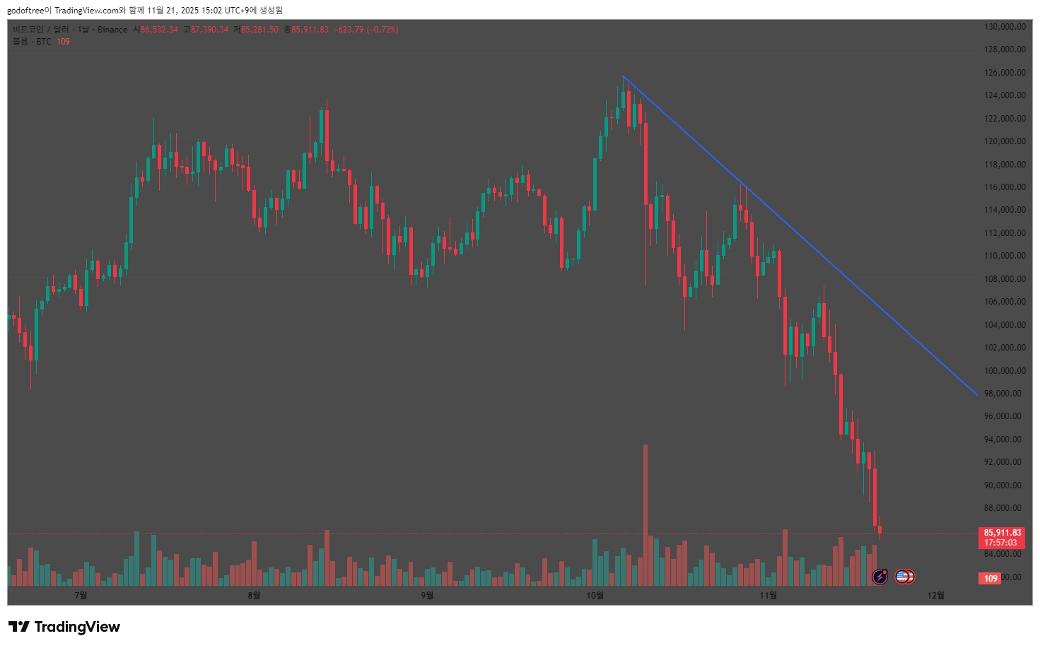 하락추세를 보이고 있네요. 이렇게 하는게 맞겠죠..?