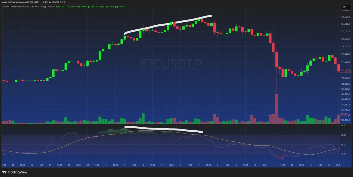미션 : 실제 다이버전스가 나온 구간을 체크해서 캡쳐해 투딩 커뮤니티 30일 챌린지 게시판에 업로드해주세요.