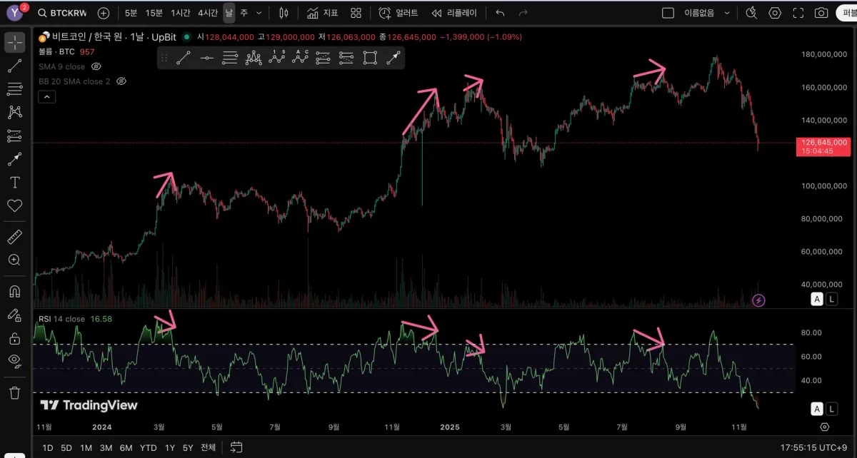 다이버전스가 나온 구간 체크해봤습니다!
