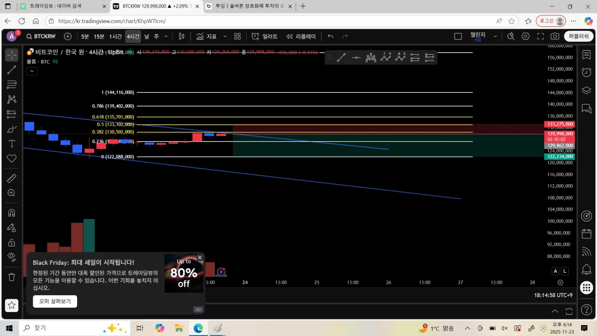 작성자진입가 129,862,000 손절가 133,100,100 목표가 122,196,000 숫자가 안떠서 댓글로 입력합니다