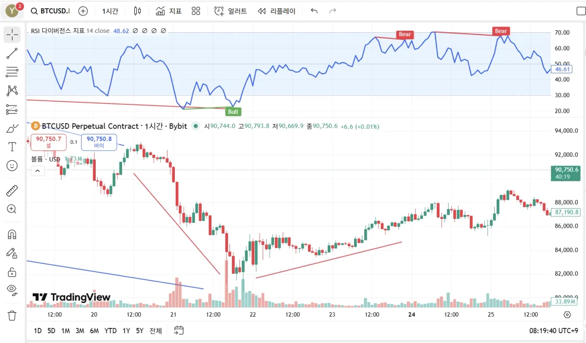 rsi 20 확인 후 롱진입 하락 추세선 이후 반등 가능성 보였으며 상승이나 미미한 상승후 횡보가능성 보였음