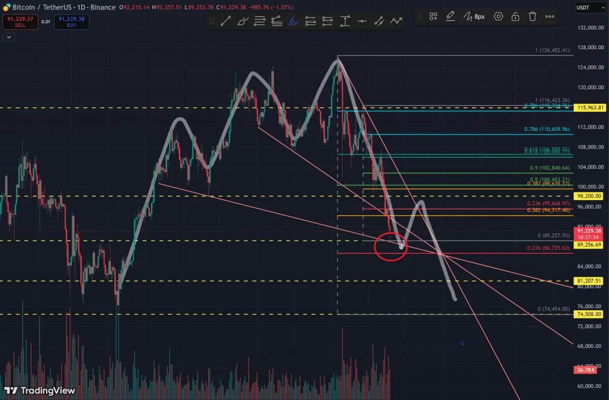 89k 쯤에서 숏진입 했겠으나 81k에서 더 하락 할것이라고 예측하고 기다리다 추세 반전에 미련을 가지고 아마도 86k쯤에서 거래 마무리 했을겁니다.