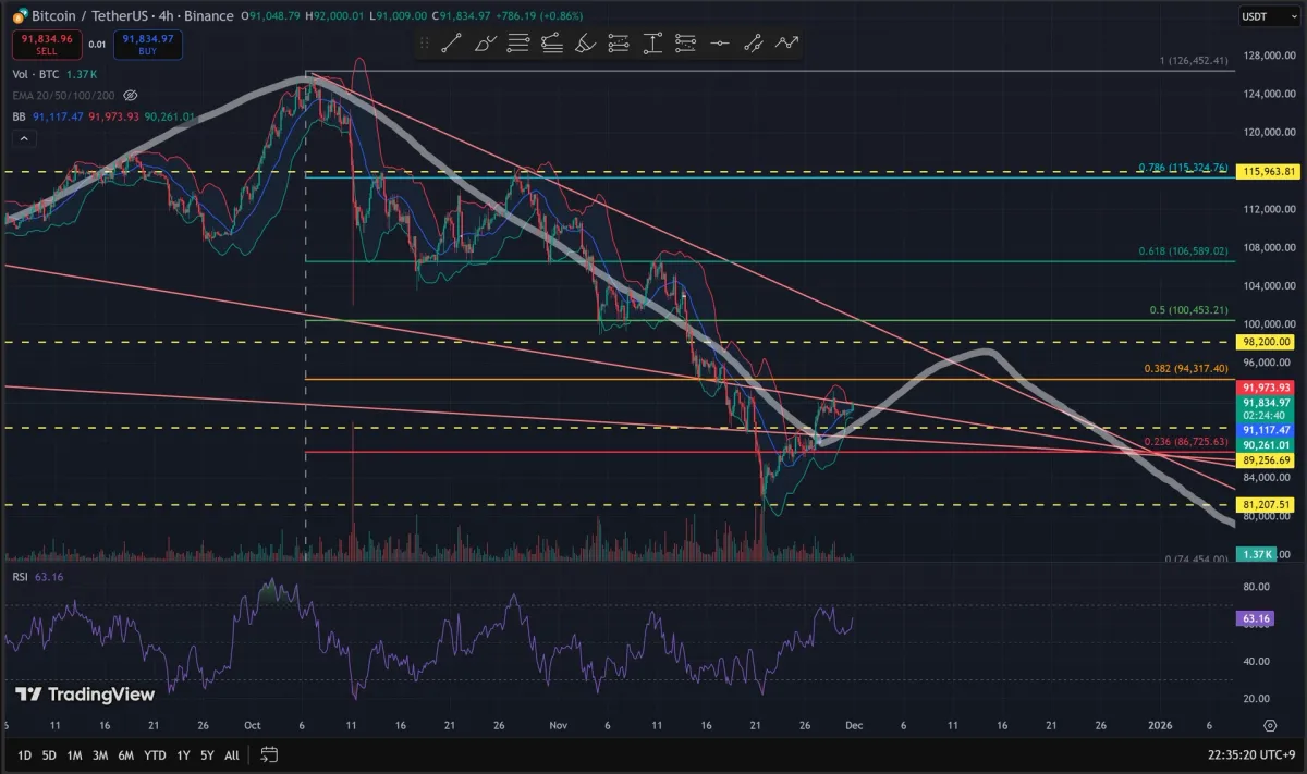 제가 11월 18일 쯤에 차트에 추세선 등 대입한 차트입니다.