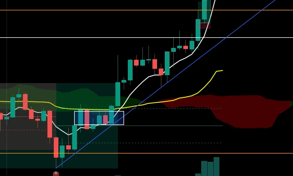 15분봉 기점으로 계속된 상승 지지라인을 생성하고, 확실한 저점을 오더블록을 연속적으로 발생시키며 돌파하는 모습을 보고 상승강세를 확인했으며,