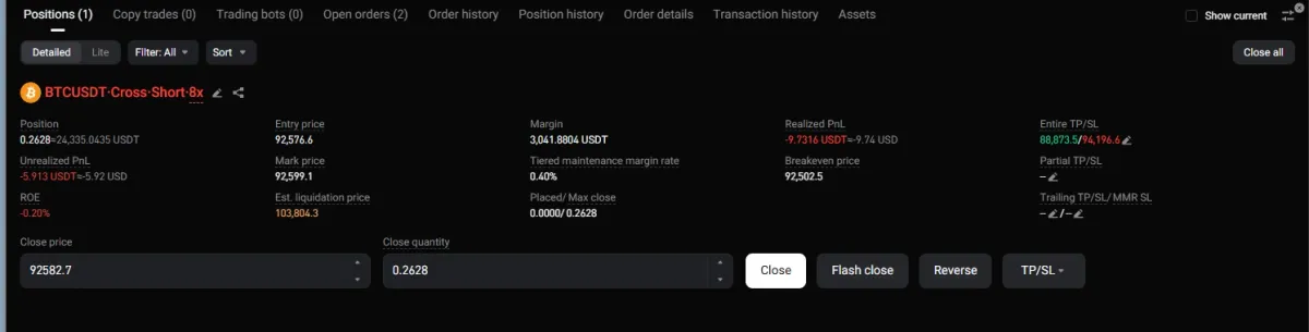 지금 진입하였을 경우, 제 예상이 틀렸을 때 1.8%의 상승이 진행되어야 하므로 15%까지는 손실을 허용하기로 했으므로 8배로 진입하였습니다.
