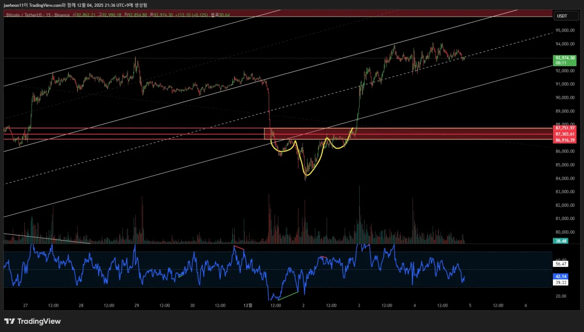 역혜숄 보여서 돌파매매 하고 채널 상단에서 절반익절하고 본절 걸어놓고 보고있습니다