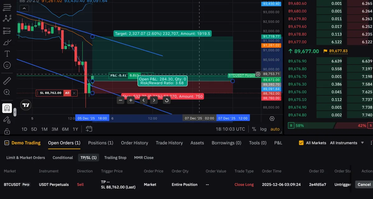 바이비트가 아직 익숙하지 않아서 우선은 모의 트레이딩으로 연습하면서 기능들을 익히는 중이었습니다...