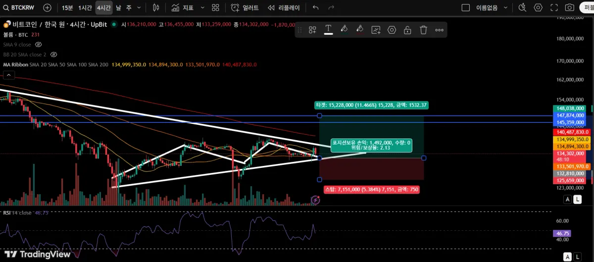 롱 포지션을 잡아 손익비 2:1로 잡아보았습니다.