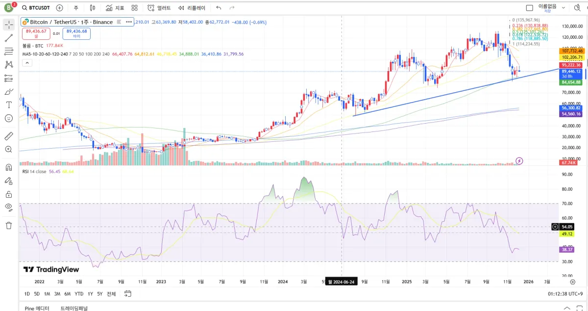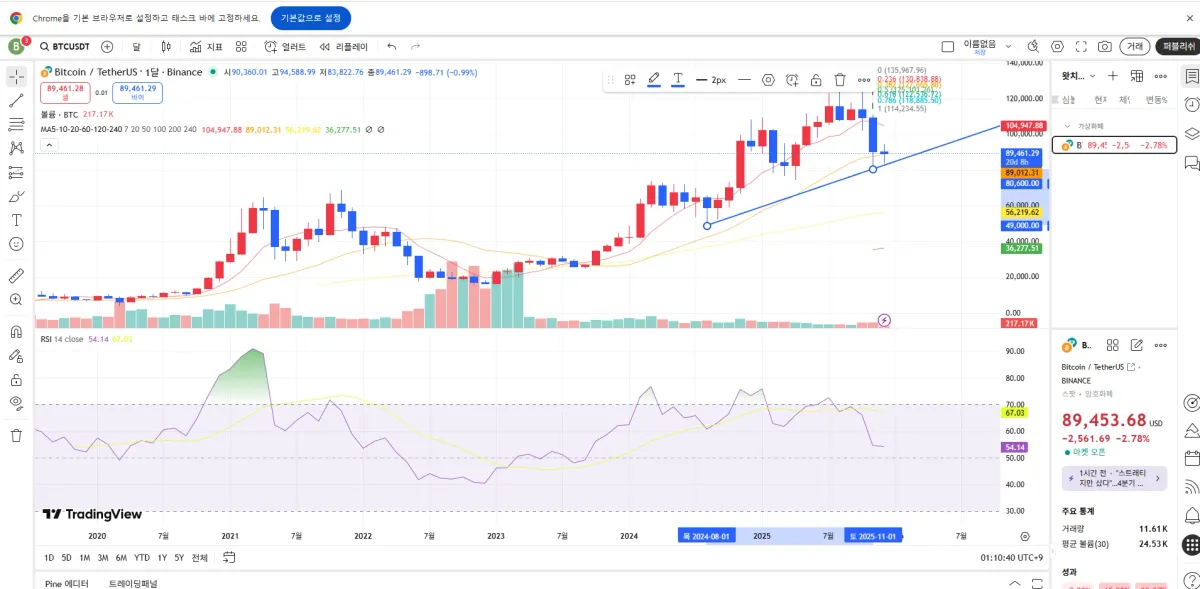 질문이 굉장히 핵심을 잘 짚으셨어서 순서대로 정리해서 답변드릴게요. 1번 질문부터입니다. 봉 별로 어디부터 어디까지 보느냐는 건 사실 “의사결정을 어디서 하느냐”의 문제입니다. 월봉은 방향과 사이클을 봅니다. 몇 개월짜리 추세인지, 지금이 상승 구간인지 조정 구간인지 판단하는 용도입니다. 주봉은 구조와 핵심 레벨을 봅니다. 중요한 고점, 저점, 추세 전환 가능 구간을 정리하는 프레임입니다. 일봉은 실제 매매 시나리오의 뼈대입니다. 어디서 분할 매수하고, 어디서 손절하고, 어디서 정리할지 기준을 세웁니다. 4시간봉은 타이밍 조정용입니다. 일봉 시나리오 안에서 조금 더 좋은 가격을 잡기 위한 보조 프레임입니다. 15분봉 이하는 진입·청산 미세조정용입니다. 방향 판단용으로 쓰면 오히려 흔들립니다. 정리하면 큰 봉일수록 멀리, 작을수록 디테일을 본다고 생각하시면 됩니다.