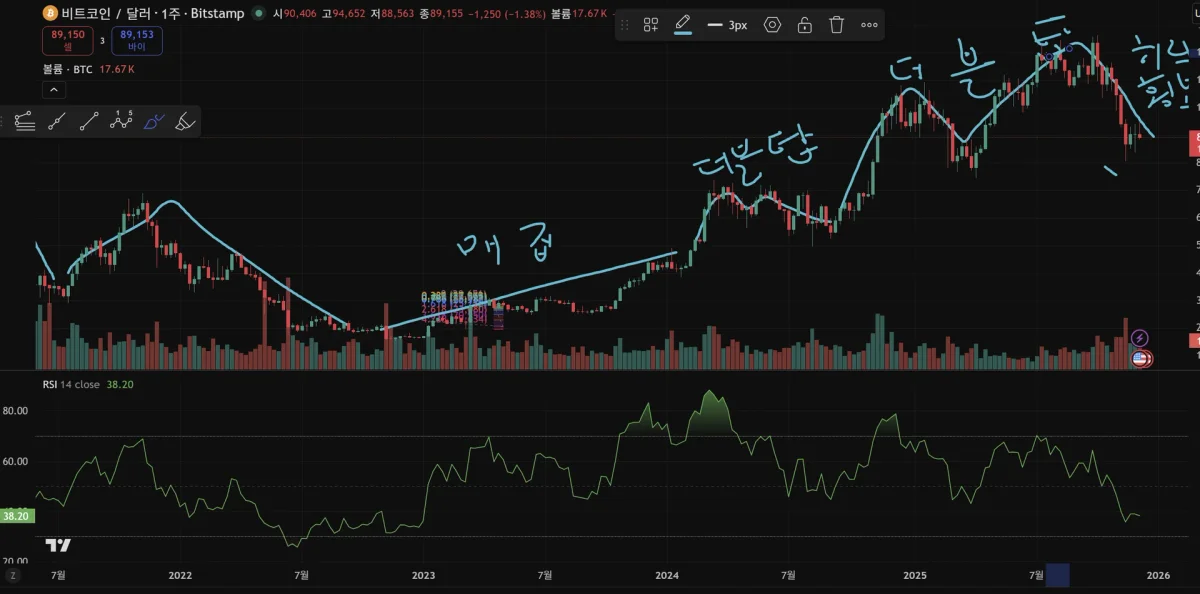btc 현재는 더블탑 이후 하락 또는 조정장인것 같은데, 개인적으로는 m2 등을 고려했을 때 하락 또는 조정장이 그렇게 오래가지는 않을 것 같기도 합니다.
