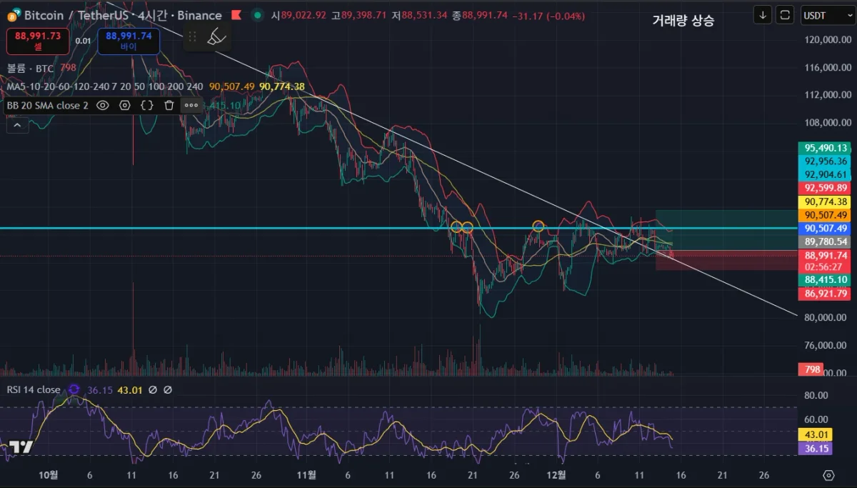 25년 10월 부터 이어져 온 추세선을 계속 해서 터치 후 돌파 움직임 이후, 다시 추세선 저항 받음