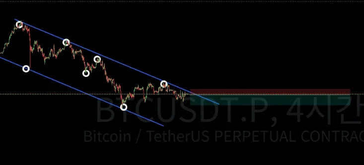 추세선과 다우이론으로 봤을 때 하락 추세가 변하지 않는다고 판단해 추세선 근처에서 숏 포지션을 진입했습니다