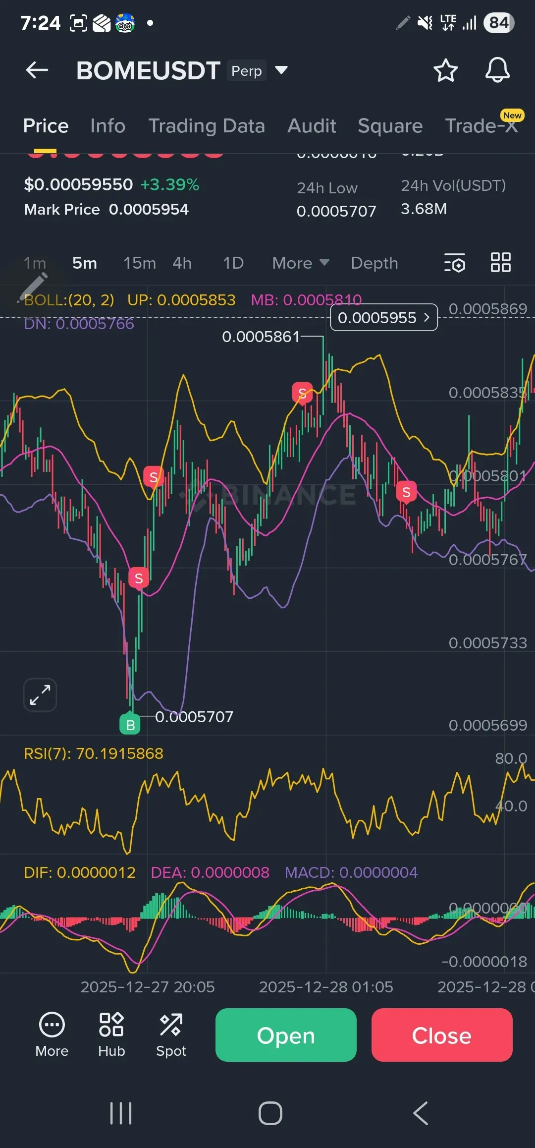 최종 익절: 단기 조정 후 재차 추세가 반전되기를 기대하며 시장을 관망하였으나, 남은 물량을 최종가 0.0005835 USDT에 전량 정리하며 매매를 종료하였습니다.