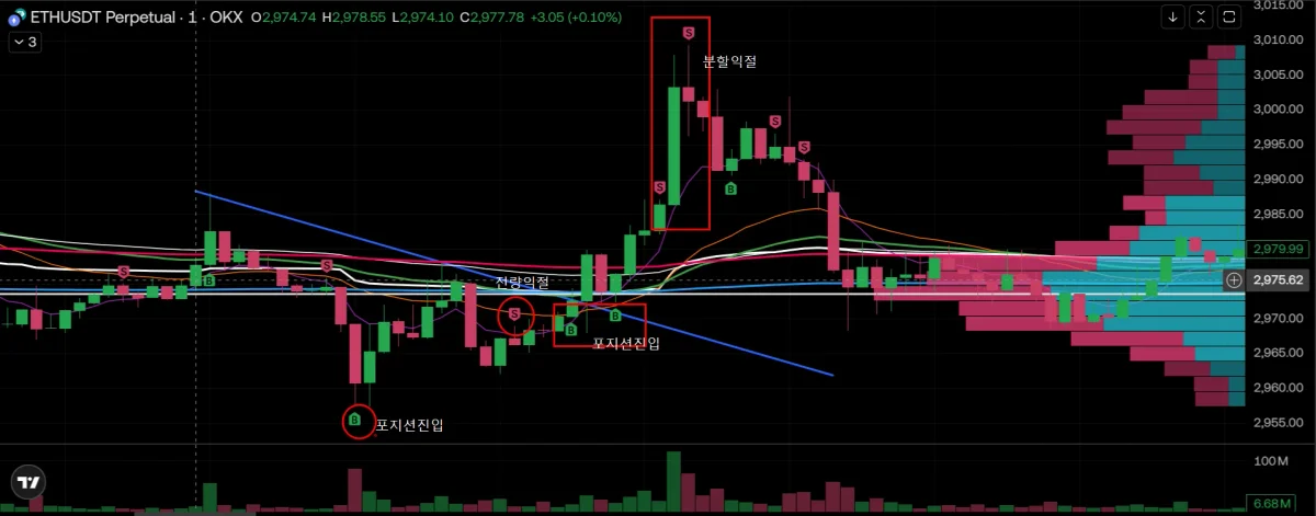 -매물대를 포지션 진입과 익절에 있어 매우 중요하게 생각했음.