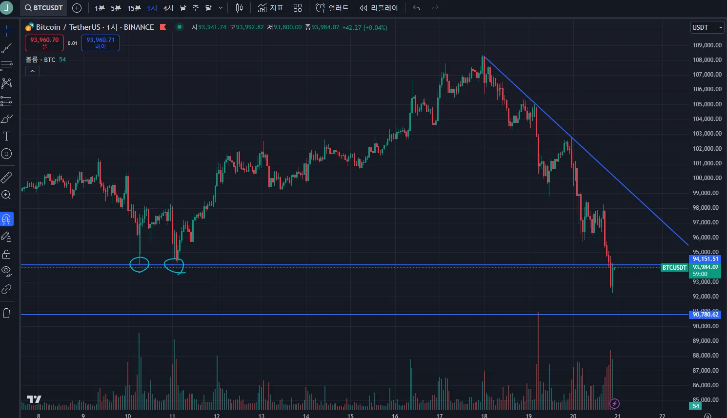추세는 하락 추세인 것 같습니다.