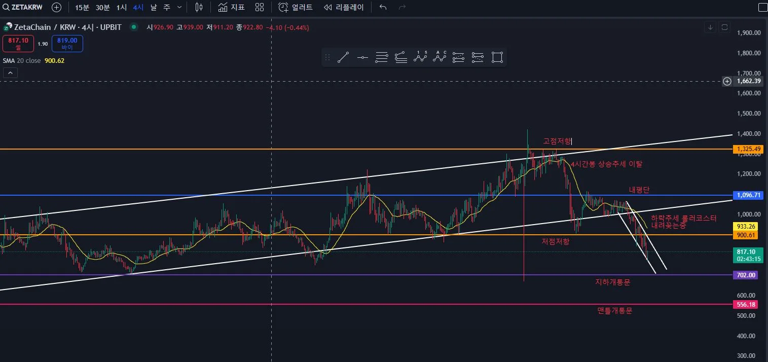 3.평단아래로 내려갔지만 다시 평단 회복하는걸 보며 2차 행복회로 가동(롤로코스터 출발)