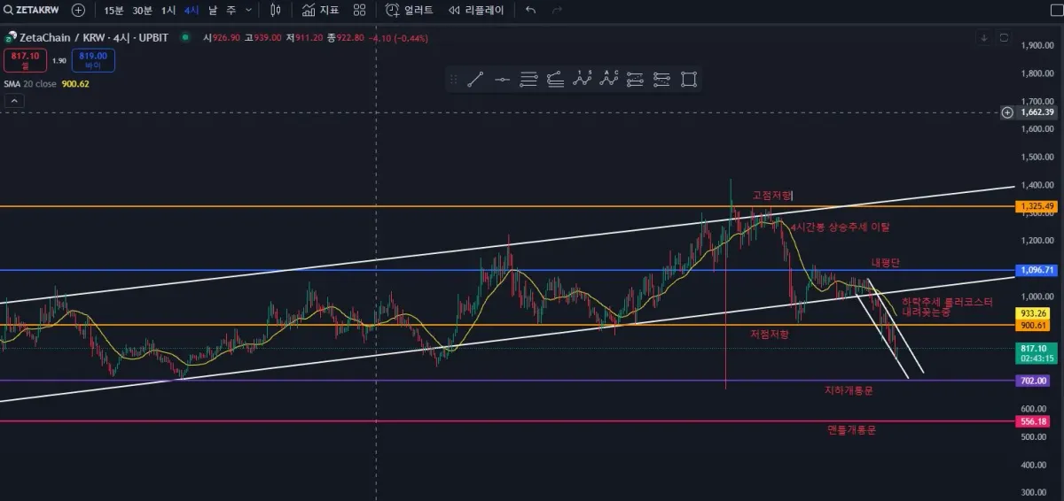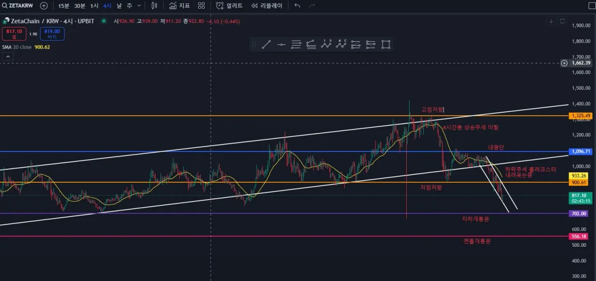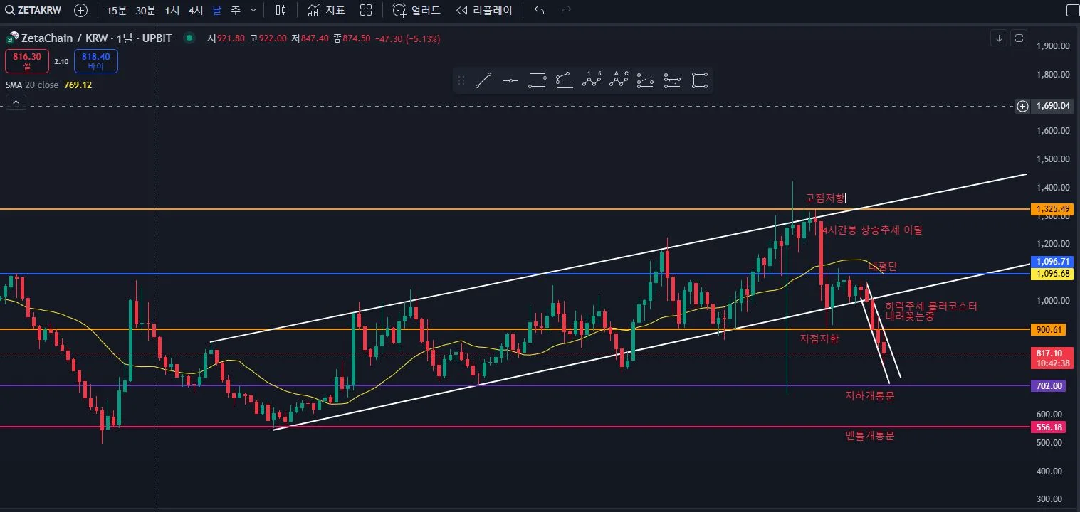4.일봉 상승추세선 안깨지겠지 하며 상승추세선 하단선 근방에서 물탐(롤로코스터 하이라이트 구간 도달 및 번지점프대 완성)